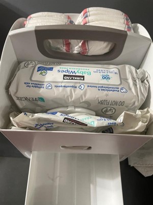 [This review was collected as part of a promotion.] Great diaper caddy. I like that it’s plastic, so it’s easy to clean. It’s spacious and has different pockets to organize everything. I like it very much.