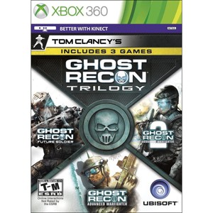 Experience three of the best Tactical Shooters games ever created with Tom Clancy's Ghost Recon Trilogy from Ubisoft for the Microsoft Xbox 360. Includes Ghost Recon Advanced Warfighter, Ghost Recon Advanced Warfighter 2 and Ghost Recon Future Soldier!Tom Clancy Ghost Recon Advanced WarfighterIn Tom Clancy's Ghost Recon Advanced Warfighter you can play as a Ghost, the best trained and equipped soldier the US Army has to offer. The year is 2013 and an insurgency has broken out in Mexico City, and it is your job to infiltrate the city and attempt to restore order.You will need to rely on your superior equipment, weaponry, and training to succeed against a larger force of enemies!Tom Clancy Ghost Recon Advanced Warfighter 2Tom Clancy's Ghost Recon Advanced Warfighter 2 builds off of the events in the first game and places gamers in control of the U.S. military's elite fighting unit, the Ghosts. In the year 2014, the rising conflict between Mexican loyalists and insurgent rebel forces has thrown Mexico into full-scale civil war.Under the command of Captain Scott Mitchell, the Ghosts are called upon to face an imminent threat to the United States...Tom Clancy's Ghost Recon: Future SoldierAs a member of the elite Ghost Recon, you are among the few who possess the power, the adaptability, and the cognitive fortitude of the future soldier. Specialized in every area of combat, equipped for survival, and trained in absolute discretion, you are entrusted with the missions no other soldier can handle.Armed to the teeth with an arsenal of real-world high-tech weaponry only in prototype today, you are an F-16 on legs, trained to lock on to your objective even in the world’s most complex, high-risk warzones!Features:Ghost Recon Advanced Warfighter - See what your squad sees, call in air strikes, and command forces in real-time with the Cross-Com. Destroy hidden enemies with the wall-piercing counter snipe rifle. Create a character and play online in 1,000 customizable multiplayer game types, or take on a separate co-op campaign.Ghost Recon Advanced Warfighter 2 - Dominate the battlefield with improved weapons like the Rx4 Storm and more. Expanded and enhanced multiplayer. You'll never fight the same way twice. Outsmart and outmaneuver your enemies with the improved, advanced Cross-Com 2.0.Ghost Recon Future Soldier - Experience an epic single-player campaign on your own, or with up to three friends in online co-op. Dominate across 10 unique maps in thrilling and innovative multiplayer modes. Create and customize more than 20 million authentic weapons with Gunsmith.