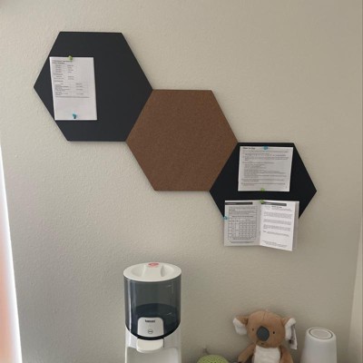 U Brands 3ct Hexagon Cork Bulletin Board Tiles: Small Corkboard for Wall, Dorm Bulletin Board, 11.5" x 10.25", Brown