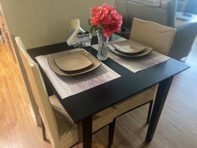 Needed a small table for my tiny apartment and this fit in the nook perfectly! Excellent quality and for a great price! Legs did need to be tightened after using it for a while and moving it around a lot but this was a great purchase! Now that I have a bigger apartment and need a bigger table - I plan on buying a bigger table from this brand again. Super easy to assemble as well.
