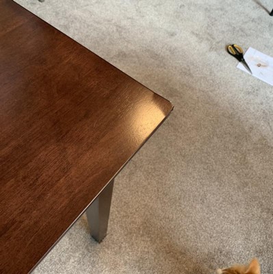 Table was delivered with damage to the top. Target return policy will not allow return to stores, you must ship back. Also replacement not provided until damaged table is received by Target. Became very awkward during holidays without the use of table. Seems like policy should be more customer friendly. Looked like it was damaged in transit.