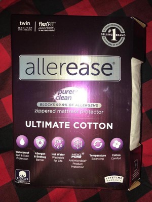 Allerease Twin Ultimate Cotton Waterproof Allergen and Bedbug Barrier Zippered Mattress Protector: Hypoallergenic Encasement