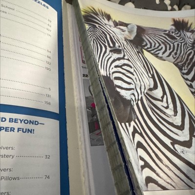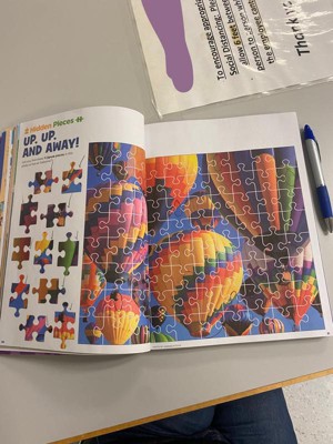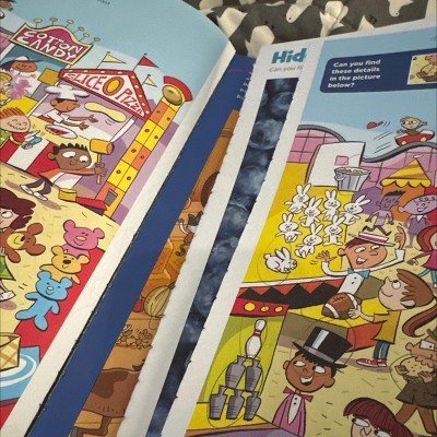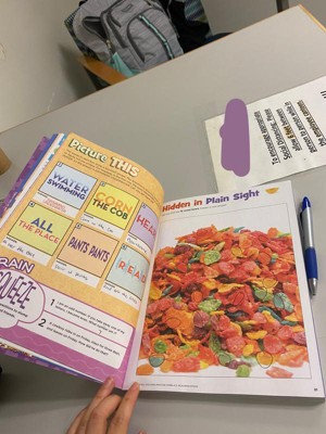 The book provides lots of different types of puzzles from word finds to picture finds.