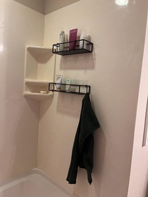 I was browsing with the intent to buy a replacement for the our existing umbra flex shower caddy when I found this. Decided to give it a shot and I am so glad I did. It looks just as great in person as it does online and was super easy to install. It's the perfect size to hold all our bottles and the hooks for hanging wash clothes ended up being a great extra we didn't even think we'd use. I would highly recommend this!
