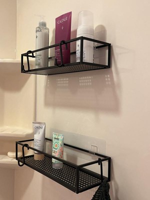 Outstanding product. I'm rarely this pleased with purchases. Two white and two black Cubikos have transformed my clutter of vanity and shower bits and bobs into style statements. Truly simple to install, just be sure about the placement because of the strong adhesive. Moveable S hooks are inspired - hang from one or lay across two.