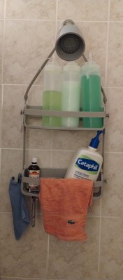 Won't fit over my curtain rod! Such a good concept to have this feature. The hook needed to be larger, with more flex so you don't need to place the Flex showercaddy on the shower head neck. The 4 suction cups came in handy to stabilize the caddy once you add toiletry bottles at different fill amounts. The Flex replaces a large metal shower caddy that turned out to not be rust resistant. Look forward to being able to better maintain Umbra's Flex caddy.