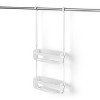 Won't fit over my curtain rod! Such a good concept to have this feature. The hook needed to be larger, with more flex so you don't need to place the Flex showercaddy on the shower head neck. The 4 suction cups came in handy to stabilize the caddy once you add toiletry bottles at different fill amounts. The Flex replaces a large metal shower caddy that turned out to not be rust resistant. Look forward to being able to better maintain Umbra's Flex caddy.