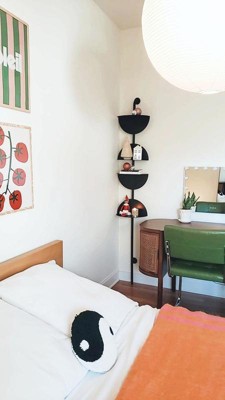 Introducing the Solis Freestanding Shelf: an eye-catching and versatile solution to elevate your display game. Crafted with precision, this set features four half-circle steel shelves elegantly mounted on a pole that effortlessly integrates with your space. The innovative design offers flexibility, allowing you to choose between two mounting options for each shelf: half-moon facing up or down. Plus, customize the spacing between shelves to perfectly showcase your favorite items, whether at home, in retail displays, or at trade shows. Constructed from durable bent steel, each shelf supports up to 15lbs. (6.8kg) of your prized possessions. Use multiple shelves to create your own customized eye-catching statement. Measures 13.88 x 10.5 x 80.13" (35 x 27 x 204 cm).