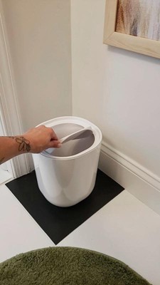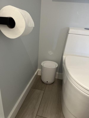 I bought two of these trash cans for our bathrooms several years ago. They’re still as good as new and I especially like the fact that the lid hides the garbage. I like the simple modern shape and the size is perfect for its use.