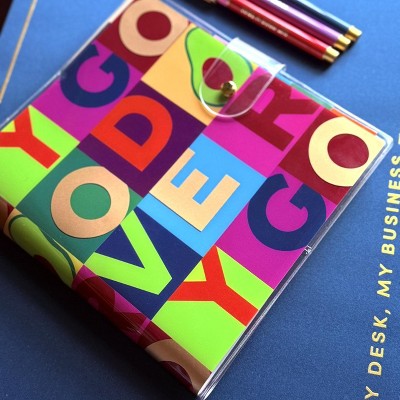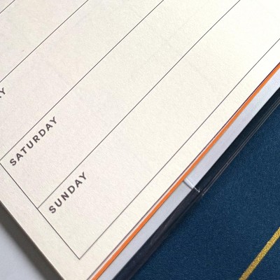 Absolutely love the bold colors with gold. Love that it has a plastic cover. I enjoy the monthly view and week overview for simplicity.