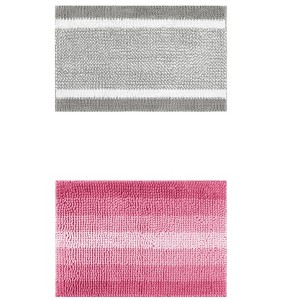 Unique Bargains 2Pcs Chenille Striped Machine Washable Non-Slip Soft Plush Shaggy Bathroom Rug Mat
