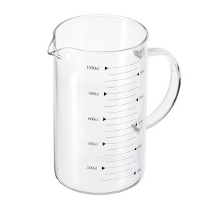 Made of 3.3 borosilicate glass, it is heat-resistant and corrosion-resistant. The scale is printed and easy to read; the handle is ergonomic; the V-shaped pouring spout controls pouring and prevents spills. It is easy to clean and can be used in dishwashers, refrigerators, and microwaves. This glass measuring cup is an ideal choice for professional chefs and home cooks. It can accurately measure and mix ingredients and is an essential tool in any kitchen. Note: When heating the beaker, place a mesh lid under the beaker to ensure even heating; when used for dissolving, the amount of liquid should not exceed 1/3 of the beaker volume; when stirring, do not touch the bottom or wall of the cup.