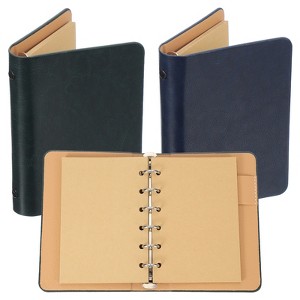 Unique Bargains A7 Kraft Leather Notebook 6 Ring Binder with 50 Sheets Paper 2 Pcs