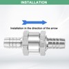 This fuel line check valve can be installed in automobiles, boats, helicopters, ships, motorcycles, and other fuel systems for water, gasoline, diesel, oil, etc. It is an indispensable accessory in the fuel system. Fuel check valves are made of aluminum alloy material, which is stable and reliable, and can be resistant to diesel, gasoline, and aging. Its strong durability and weather resistance provide a long service life. Fuel check valves feature a one-way check valve design that prevents fuel from flowing back into the tank and keeps fuel in the line when the engine is not started. This fuel check valve is easy to install. The check valve is labeled with an arrow indicating the direction of fluid flow. Simply connect the fuel line in the direction of the arrow.
