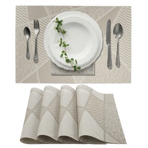 Unique Bargains Blocks Pattern Placemats 4 Pcs White Beige
