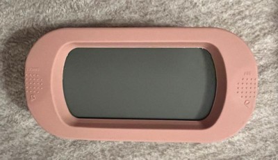 [This review was collected as part of a promotion.] This is a really cute clock. I got the Mauve color which is a perfect pink. I like the large digital screen and it is super easy to set in program. It takes 3 triple AAA batteries.