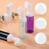 The set includes 4 empty foaming soap dispensers with brush heads. These soap pump containers have a 2oz capacity, making them suitable for travel or outings. Made of PET and silicone, the face foam bottle is durable, refillable, and reusable. Simply fill the bottle with your favorite facial cleanser or foaming soap, add water if necessary, and attach the brush head. Gently massage the foaming cleanser onto damp skin in circular motions for a thorough cleanse. The empty foam face wash bottle can be used at home, in the kitchen, bathroom, office, or on trips. Suitable for cleaning supplies and facial cleansers. When using the brush head attachment, be gentle to avoid scrubbing too vigorously to prevent irritation or damage to the skin. Keep the foaming bottles clean and dry.