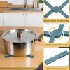 The foldable silicone trivet offers a practical solution for protecting countertops and tables from hot dishes. Made from durable silicone, it withstands high temperatures without deforming. Its foldable design makes it convenient to store in drawers or cabinets, saving valuable kitchen space. Cleaning is effortless as it is waterproof and oil-proof, allowing for quick wipe-downs or dishwasher cleaning. This trivet is ideal for various uses, including as pot holders, drying mats, and coasters, making it a versatile addition to any kitchen. It also makes a thoughtful gift for family and friends.