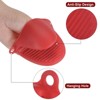 These small silicone oven mitts are made of durable, heat-resistant material that can withstand temperatures up to 482°F. They are designed to fit fingers and thumbs, making them easy to put on and take off quickly. The mitts are easy to clean, just rinse them and hang them to dry. They are perfect for safely gripping hot items like pot lids, plates, and microwave dishes. The package includes two pairs of mitts, and they come in a convenient size of 110x85x70mm/ 4.33"x3.35"x2.76"(L*W*H).