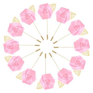 Unique Bargains Mens Golden Leaf Rose Lapel Boutonnieres Pin for Wedding 12 Pcs