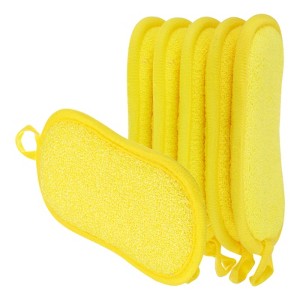 Unique Bargains Multipurpose Microfiber Kitchen Dish Sponge Pads 5 Pcs Yellow