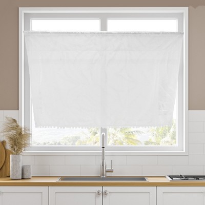 Crafted from durable fabric, providing a stylish yet low-maintenance window treatment. Light-colored fabric brightens your room while reducing glare, making it suitable for spaces where you want both sunlight and privacy. Designed for small to medium windows, suitable for kitchens, bathrooms, basements, or dining areas. The classic curtain design brings a timeless, farmhouse-inspired appeal that complements various interior styles. It's easy installation, compatible with standard curtain rods for quick setup and adjustment.