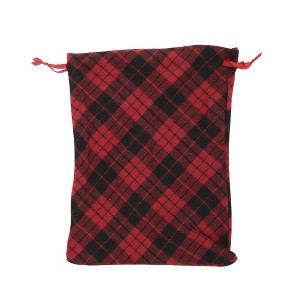 Unique Bargains Plaid Drawstring Bag 1 Pc Black