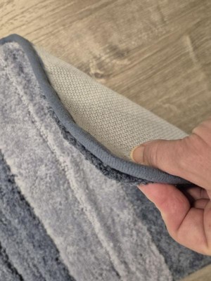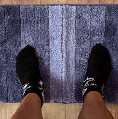 [This review was collected as part of a promotion.] I love blue, and this gradient blue mat fits in my main bathroom. It is a little shaggy with plastic backing. I do wish it was a bit thicker, but it does its job. I would use it in a bathroom with less activity because when multiple people used the rug after their shower, it took a bit long to dry fully.