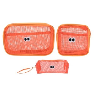 Unique Bargains Rectangular Bean Eye Makeup Bag Set 3Pcs Orange