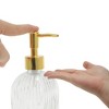 Unique Bargains Rectangular Bottom Vertical Stripes Soap Dispenser 13.53oz Clear Gold Tone 1 Pc