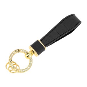 Unique Bargains Rhinestone Keychain Gold Tone Black 1 Pc