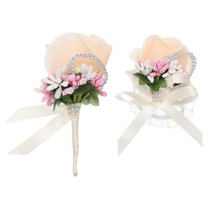 Unique Bargains Rhinestones Artificial Rose Bridesmaid Wrist Corsage and Boutonniere Set