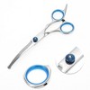 Item Function: 1. The removable rubber rings on the handle, can avoid harming your fingers and comfortable to hold, for different finger sizes use. 2. Dog scissors are made of good stainless steel, the dog scissors blade is powerful enough, good cut long and short hair for dogs, cats. 3. Dog grooming shears have rounded end tips, No worry about accidentally poking pets, especially when grooming sensitive areas, such as face, ears, eyes, nose. 4. The sharped blade makes the dog grooming scissors professional and more smooth and stable, deliver Professional grooming results for your dog every time. Specifications: Product Name: Pet Grooming Scissors; Material: Stainless Steel; Color: Blue, Silver Tone; Scissors Length: 7cm / 2.76'', Short Side Length: 14.2cm / 5.5", Ring Diameter: 1.9cm / 0.75", Overall Size: 17x5.6cm / 6.69''x2.2"(L*W); Package List: 1 Pc Pet Grooming Scissors.