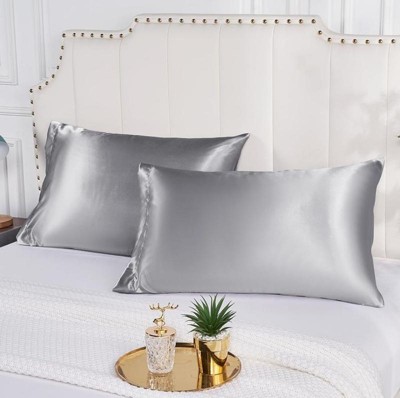 Unique Bargains Breathable Satin Solid Envelope Closure Pillowcase 2 Pcs Beige King+ 20"x40"