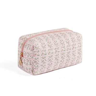 Unique Bargains Simple Vertical Strips Makeup Bag Lavender Purple 1 Pc