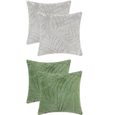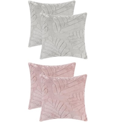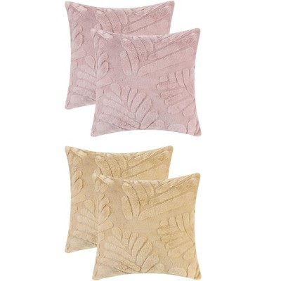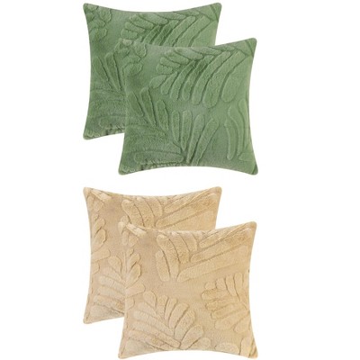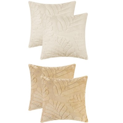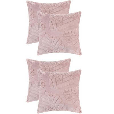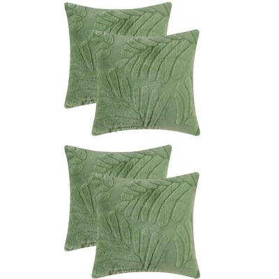 Unique Bargains Solid Basho Leaf Pattern Soft Fluffy Plush Square Pillowcase 4 Pcs Khaki 18" x 18"