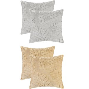 Unique Bargains Solid Basho Leaf Pattern Soft Fluffy Plush Square Pillowcase 4 Pcs Khaki/Grey 18" x 18"