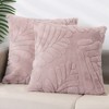 Unique Bargains Solid Basho Leaf Pattern Soft Fluffy Plush Square Pillowcase 4 Pcs Pink/Beige 18" x 18"
