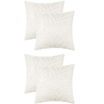 Unique Bargains Solid Basho Leaf Pattern Soft Fluffy Plush Square Pillowcase 4 Pcs Pink/Grey 18" x 18"