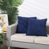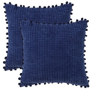 Unique Bargains Solid Square Boho Pillow Covers with Pom-poms 2 Pcs Dark Blue 18" x 18"