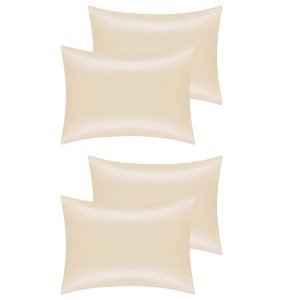 Unique Bargains Standard Breathable Satin Solid Envelope Closure Pillowcase 4 Pcs Beige 20*26in