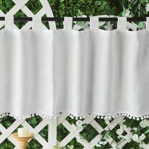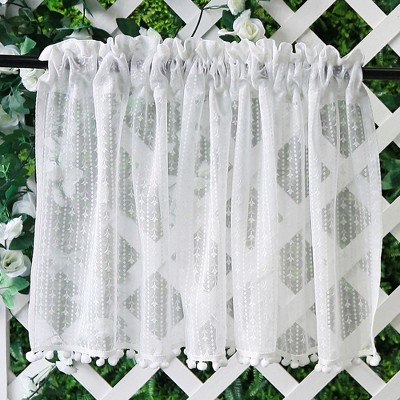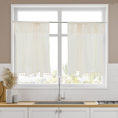 Crafted from durable fabric, providing a stylish yet low-maintenance window treatment. Light-colored fabric brightens your room while reducing glare, making it suitable for spaces where you want both sunlight and privacy. Designed for small to medium windows, suitable for kitchens, bathrooms, basements, or dining areas. The classic curtain design brings a timeless, farmhouse-inspired appeal that complements various interior styles. It's easy installation, compatible with standard curtain rods for quick setup and adjustment.