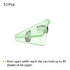 Made of plastic and metal, this lightweight and durable clip is rust-resistant and features smooth edges. Its simple and elegant design is suitable for everyday reading. The clips fit snugly against the paper, providing a more secure hold than ordinary clips, preventing them from coming undone and easily holding even small amounts of paper. How to use: The press-to-open mechanism is easy to use; simply pinch the clip to secure the paper and prevent corners from curling. Uses: Typically used to protect the edges and corners of paper, facilitating writing and reading. Suitable for organizing papers, notes, and sheet music; can also be used as a temporary bookmark.