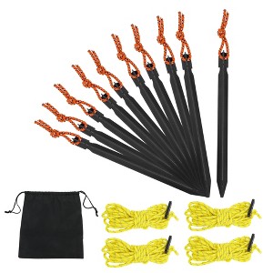 Item Function:1.An ultra-light, three-sided, aluminum alloy tent stakes that securely anchors your tent without adding unnecessary weight to your pack, you won't even feel these camping essentials in your pack. Inflatable tent stakes lightweight are easy to carry with you. 2.The mitsubishi nail-type design offers superior penetration and holding power, ensuring that tents stay securely staked out, even in rough weather.3. Essential tool for securely anchoring tents, canopies, landscape trim, or outdoor decoration. 4. The storage pouch is made of good material, durable and not easy to wear. Specifications: Product Name:Tent Pegs, Material: Aluminum Alloy, Polyester, Nylon, Length: 18cm / 7.09", Package List:1 Set Tent Pegs.