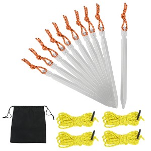 Item Function:1.An ultra-light, three-sided, aluminum alloy tent stakes that securely anchors your tent without adding unnecessary weight to your pack, you won't even feel these camping essentials in your pack. Inflatable tent stakes lightweight are easy to carry with you. 2.The mitsubishi nail-type design offers superior penetration and holding power, ensuring that tents stay securely staked out, even in rough weather.3. Essential tool for securely anchoring tents, canopies, landscape trim, or outdoor decoration. 4. The storage pouch is made of good material, durable and not easy to wear. Specifications: Product Name:Tent Pegs, Material: Aluminum Alloy, Polyester, Nylon, Length: 18cm / 7.09", Package List:1 Set Tent Pegs.