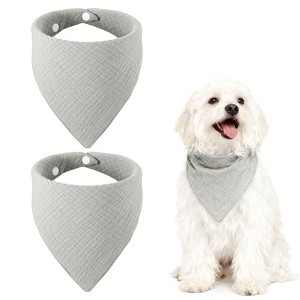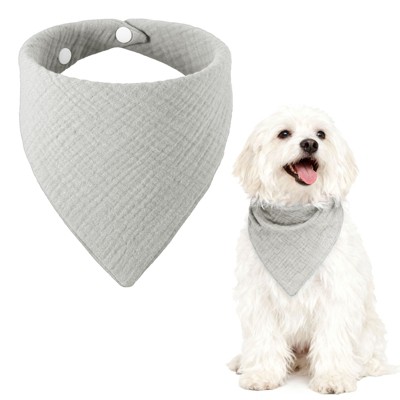 Unique Bargains Washable Solid Soft Button Triangle Bib Cat Dog Bandanas 2 Pcs Gray
