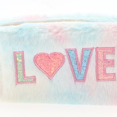 Unique Bargains Women's Durable Sequin Heart LOVE Makeup Bag 1 Pc