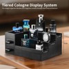 The perfume display stand adopts a layered design, with each layer capable of holding multiple perfume bottles. This makes it easy for you to classify and organize your perfume collection. The perfume stand organizer adds an element of style and sophistication to your perfume collection. In addition, this perfume display shelf can be used to store and display women's perfumes, nail polish, vintage bottles, or collectibles. The perfume holder organizer for the dresser comes with extra-deep drawers and compartments. The compartments with velvet are available on the top, bottom, and sides to ensure your belongings stay organized and allow you to store watches, rings, necklaces, valuable jewelry, coins, and other items in them. The base is lined with soft velvet to protect your items from scratches and other wear. Lift the lid to easily open the hidden compartment at the top. The perfume display risers are made of solid wood, making them both durable and beautiful, and providing sturdy support for your perfume. Each tier is designed to hold and showcase your perfume bottles, allowing you to easily access and select your preferred scent. The natural wood finish and compact design of this perfume holder make it the perfect addition to any dresser or desk. Its practicality and aesthetic appeal seamlessly blend. The practicality and aesthetic appeal of bedroom decor for men seamlessly blend. The multi-layered design of the perfume display elevates perfume presentation. Every level of a perfume stand for men can hold some bottles, enabling you to exhibit your taste in fragrances.