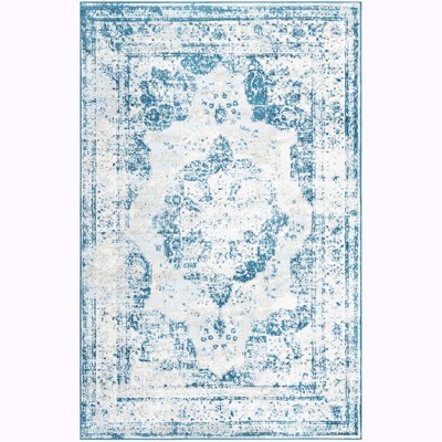 This is a beautiful rug with a soft pile. It brightens up a room with a nice balance of blue and white. The price was very affordable. I do not get rugs any where else because prices and quality cannot be matched any where else.