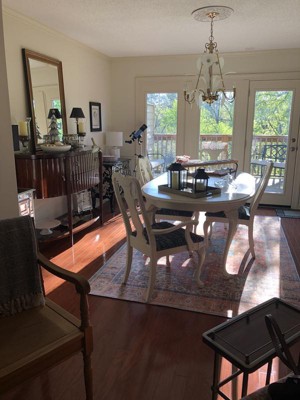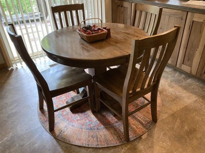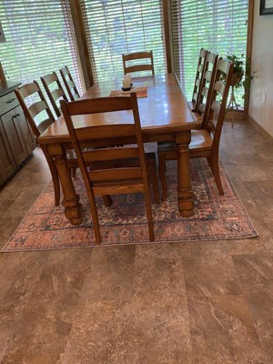 This rug is perfect for my dining room. The colors are exactly what I was looking for and they look just like the photos. It is nice and low profile, so my dining chairs move easily, and for the price I don't have to worry about my cats destroying it.